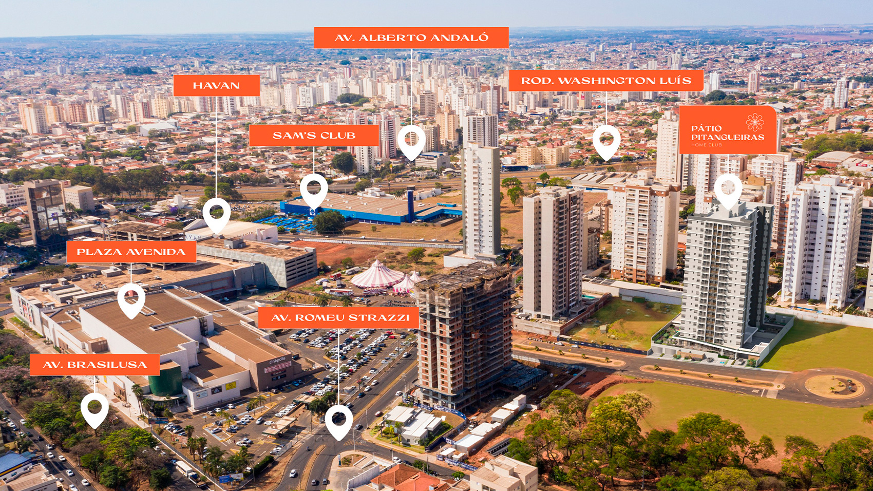O Pátio Pitangueiras Home Club possuí apartamentos de 94m² com 3 dormitórios e 1 suíte. Em uma das localizações mais valorizadas de São José do Rio Preto, atrás do Plaza Avenida Shopping, em um bairro planejado no coração da cidade.